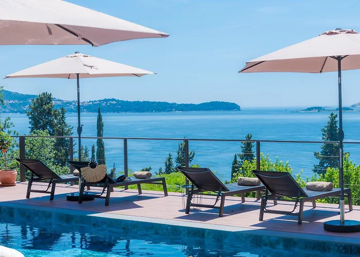 Villa Hortensia-With Private Pool And Beaches Front está localizada a 15 minutos de carro da Praia de St. Jakov e tem utensílios para churrasco e jardim para garantir uma estadia memorável. Com acesso a terraço, esta acomodação está localizada a 4.5 km da Avenida Cavtat.